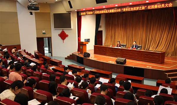 5月9日下午,我校在图书馆第一学术报告厅举行第四届“互联网+”大学生创新创业大赛暨“青年红色筑梦之旅”动员大会,部署参赛工作,吹响全校创新创业集合号。校长曹云霞出席大会并讲话,校党委副书记刘群英主持会议。