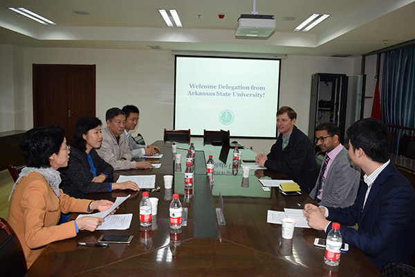 10月18日,美国阿肯色州立大学全球事务办公室主任斯拉莱纳塔拉詹·希瓦库马朗(Thillainatarajan Sivakumaran)一行来我校访问。校长曹云霞亲切会见了来宾并与他们进行了友好会谈。