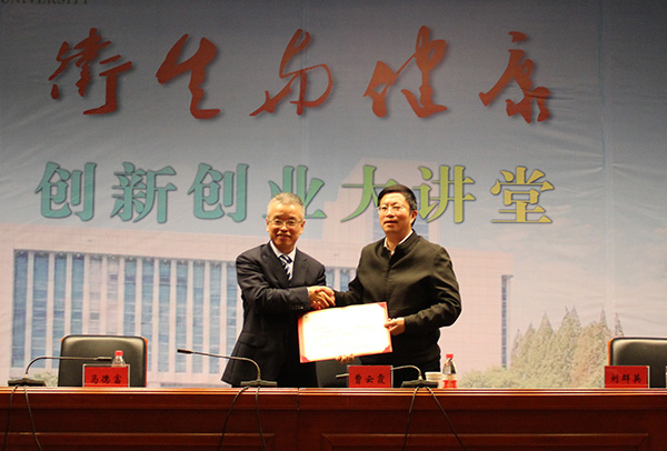 报告结束后,刘群英代表学校为马德富教授颁发卫生与健康双创大讲堂第一讲荣誉证书。此次报告会为我校师生带来了全新的创新创业教育理念,师生获益匪浅。