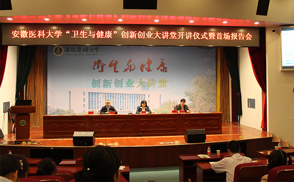 10月25日下午,我校“卫生与健康”创新创业大讲堂开讲仪式暨首场报告会在新图书馆一楼学术报告厅举行。校长曹云霞在开讲仪式上致辞,知名创新创业教育专家马德富教授作为首期开讲嘉宾为我校师生作报告,校党委副书记刘群英主持仪式。