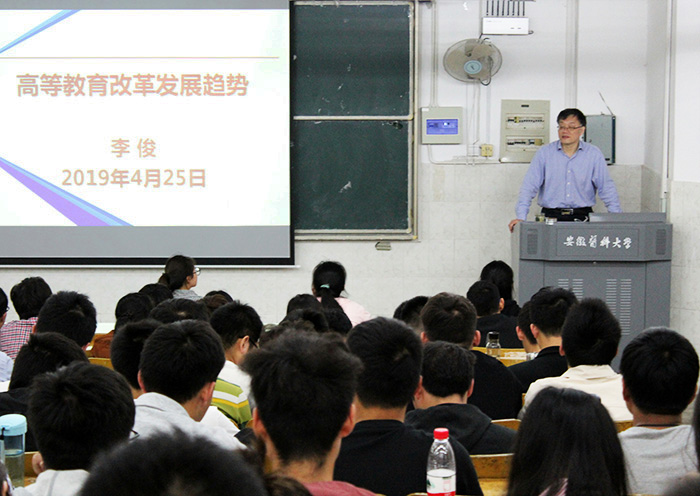 4月25日晚,校党委书记李俊为2018级临床医学(“5+3”一体化)和儿科学等专业同学讲授题为《高等教育改革发展趋势》的 “形势与政策”课。