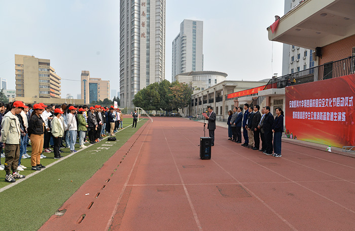 118日上午,在第28个“全国消防宣传日”来临之际,我校举办第四届“校园安全文化节”启动仪式暨高层学生公寓消防疏散演练活动。副校长肖圣龙全程观摩演练并在启动仪式上讲话。
