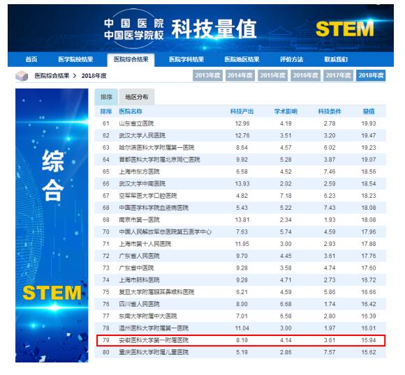安徽日报客户端:我省一医院入围“2019年(2018年度)中国医院科技量值”百强榜