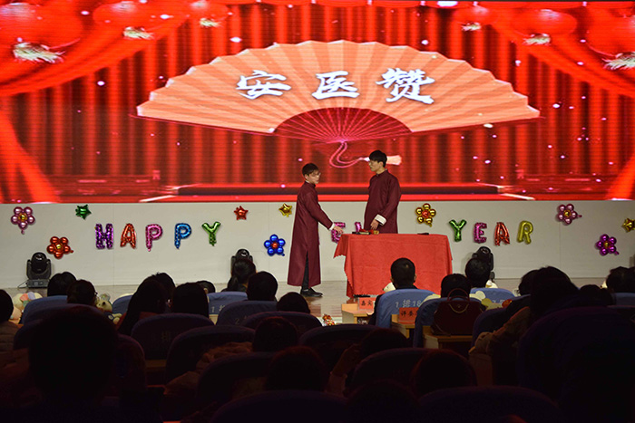 晚会以“铸牢初心使命,勇担复兴重任”为主题,各研究生培养单位师生为大家倾情奉献了丰富多彩的文艺节目。伴随着大学生良医合唱团《和快乐相约》的歌声,元旦联欢晚会拉开帷幕。药学院带来的舞蹈《启航》,寓意着我校师生在新的一年里,用初心打造底色,用担当践行使命,不断为高水平医科大学建设注入新动能;马克思主义学院、公共卫生学院分别带来舞蹈《渔光曲》《红船》,用优美的舞姿表达了对美好未来的憧憬;基础医学院《峥嵘岁月,盛世中华》T台秀,将中华传统服饰的演变与舞步完美结合,展示出中华民族的灿烂文化和悠久历史;生物医学工程学院则以饱含真情的激情朗诵《我的祖国》,表达了对伟大祖国的深深热爱,发出了“不忘初心、牢记使命”的时代强音;巢湖临床医学院(附属巢湖医院)的相声《安医赞》,用说学逗唱讲述了安医人在不同岗位上书写的精彩故事,赞美一代代安医人弘毅担当、造就良医、奉献人民的精神品质。