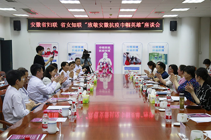 5月12日下午,时值“5·12”国际护士节,由安徽省妇女联合会、省妇女知识分子联谊会举办的“致敬抗疫巾帼英雄座谈会”在我校第二附属医院举行。会议向全省广大妇女发出了学习抗疫巾帼英雄先进事迹的倡议。安徽省妇女联合会党组书记、主席刘苹,省科技厅厅长、省女知识分子联谊会会长罗平出席座谈会,并对抗疫巾帼英雄进行慰问,校长曹云霞出席座谈会并致辞。