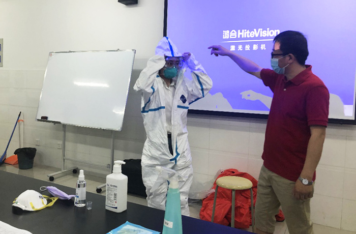 做好实验室相关疫情防控工作外,实验教学负责教师也为学生们精心准备了返校第一课内容。放射卫生实验课上,基础医学院核医学教研室教师徐师国按照教学大纲要求,向学生详细介绍了不同放射线的测量方法,对于不同放射性污染的防护和处理方式作了仔细说明,并叮嘱同学们要在日常继续做好个人防护。公共卫生实践技能课上,公共卫生学院教师张志华按照公共卫生执业医师资格考试规范,对“防护服的穿脱”这项技能操作进行了细致的讲解和示范,结合公共卫生技能大赛的经验向学生传授了技巧,并对学生的操作练习进行现场指导和现场答疑。牙周病学实验课上,口腔医学院教师孙晓瑜、程楠严格按照口腔执业医师资格大纲,向学生重点讲授了临床、执医医师资格考试时容易出现的错误,并将龈上洁治术的实验课贯穿于牙周理论课当中。