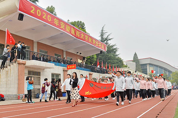 开幕式举行了隆重的入场仪式,20支学生代表队和24支教职工代表队穿着统一队服,以饱满的精神、整齐的步伐依次通过主席台。入场仪式完毕,全场起立,高唱中华人民共和国国歌。