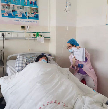 11月16日,安医大附属巢湖医院产房里正在上演感人至深的纸上谈“生”,聋哑产妇陈女士因宫缩疼痛不已,待产室助产士夏菲菲在纸上与她交流。“姑娘,现在肚子几分钟疼一次,有便意感吗?”“姑娘,你现在需要做内检了,我帮你好吗?”“宫口开大3厘米,你就可以打无痛了。”面对这位特殊的产妇,聪明的助产士姑娘们想到了纸上谈“生”的沟通办法,把分娩过程的注意事项和对陈女士关心的内容事先打印在纸上。