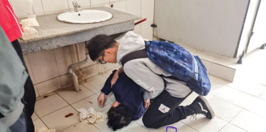 当天上午10 时左右,该校第一临床医学院2019 级临床医学专业姚海霖、刘海峰两位同学结束实验课,经过笃行楼一楼男厕时,突然发现一名中年男子摔倒在洗手池边。他们一边呼喊,一边拨打120 急救电话,同时与陪同在场的离退休人员工作处人员赶往校门口,为即将到达的救护车引导方向。