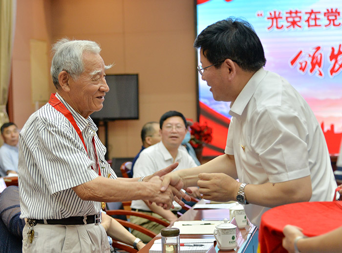 在认真聆听老党员饱含深情的发言后,顾家山指出,广大老党员在党的领导下,呕心沥血、忘我工作,在革命、建设和改革的各个历史时期作出了重要贡献,为学校的建设和发展贡献了重要力量。在中国共产党成立100周年之际,向老党员发放“光荣在党50年”纪念章,是对坚守立德树人初心、为学校事业发展做出突出贡献的老党员、老前辈的一次集中致敬,也是对全校师生党员党性的一次精神洗礼。