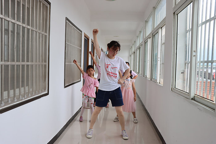 “七彩课堂”上实践队员教小朋友跳舞