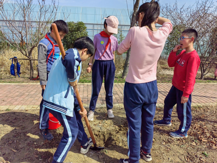 最后的劳动实践课程是植树。在农场,出力流汗还不是特殊之处,现代农业、未来农业的发展要和体力劳动结合、交互在一起,把劳动落实在“育人”上。