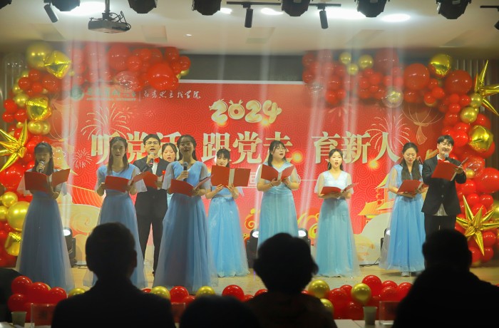 2023年12月27日晚,马克思主义学院“听党话、跟党走、育新人”2024年师生元旦晚会在校青年之家举行。校党委副书记谢瑞瑾出席活动,观看演出并讲话。