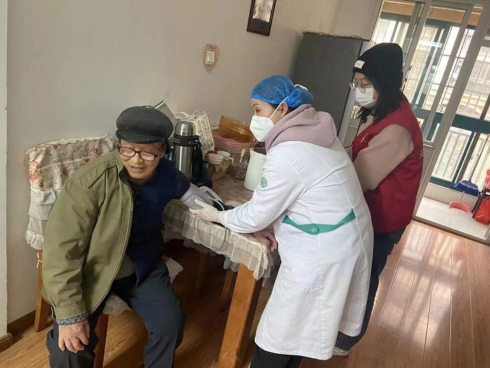 在专业课的学习中,2022级卫生检验与检疫专业的俞文静了解到,由于老年人的健康状况往往更加脆弱,定期测血压可以帮助他们及时发现和管理高血压等潜在的健康问题。寒假回家后,她第一时间到社区报到,主动承担起为老年人免费测量血压并普及健康知识的任务。“我们的工作可以增强社区老年人对健康的关注,提高老人对自身健康的认知,促进健康生活方式的养成。于我而言,这次宝贵的经历也让我更深刻地理解了课堂上所学到的知识,‘学达天下为公,行护健康之卫’,在老人们赞许的目光中,我更是感受到了‘公卫人’存在的意义和价值。”