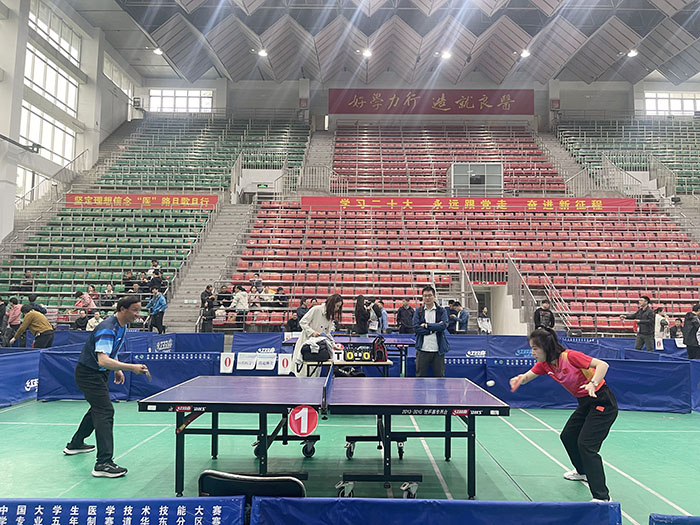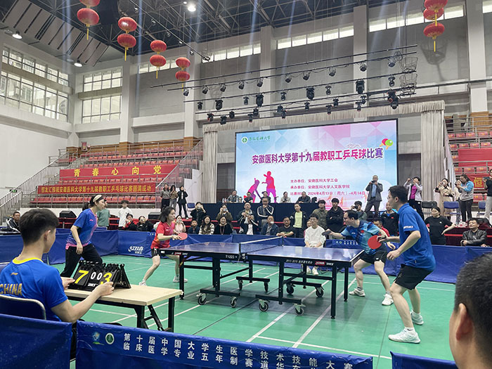 4月13日至14日,由校工会主办、人文医学学院承办的第十九届教职工乒乓球比赛在校本部体育馆举行。副校长徐朝阳出席开幕式并讲话。来自学校分工会、附属医院和离退休人员组成的18支代表队共200余名教职工参加比赛。