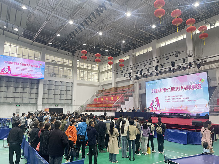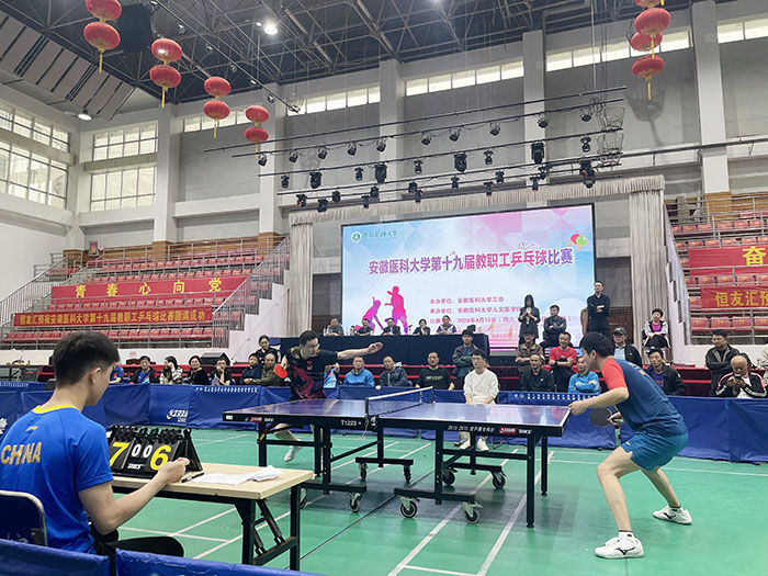 徐朝阳指出,为打造健康文明、昂扬向上、全员参与的教职工文化,激发团结奋斗的精气神,促进广大教职工享有高品质工作和生活,学校开展此次乒乓球比赛,为我校广大教职工搭建健身平台,提供一次增进友谊、促进交流的机会。本次乒乓球比赛既是学校深入贯彻落实党的二十大精神,以实际行动践行全民健身国家战略和健康行动的具体举措,也是大力弘扬健康工作、快乐工作的理念,以多彩文体活动凝聚广大教职工勇毅前行力量的生动实践。希望全体队员以饱满的激情、昂扬的斗志,发扬团结友爱、奋力拼搏的精神,赛出风格、赛出水平,展现出安医人敢打敢拼的硬作风、奋勇拼搏的精气神。