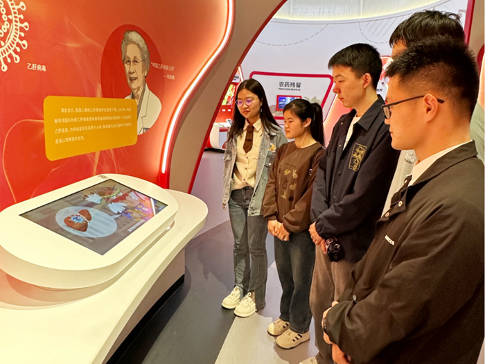 健康之本展厅,同学们身临其境般感知生命的奥秘。展品从细胞分裂到器官形成,再到生命衰老和死亡,全面细致揭示了生命的传承与演变,同学们或驻足观看,或亲身体验,或互动交流,更加直观感受到生命的厚重,更加深刻体会到“竭尽全力除人类之病痛,助健康之完美”的责任使命。