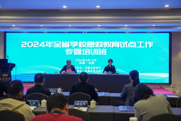 4月16日至17日,由安徽省教育厅指导、我校承办的全省学校急救教育试点工作专题培训班在我校举行。教育部体育卫生与艺术教育司体育与卫生教育处副处长樊泽民应邀出席开班式,省教育厅体卫艺处四级调研员金威威作动员讲话,校实验教学中心主任沈涛主持开班式。