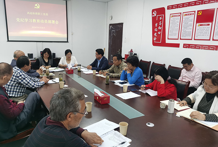 会上传达了中央党的建设工作领导小组会议精神、中共中央办公厅印发的《关于在全党开展党纪学习教育的通知》,学习省委老干部局《关于组织全省离退休干部党员参加党纪学习教育的通知》,观看学习视频,解读学校党纪学习教育实施方案,并对我校离退休教职工党员党纪学习教育进行安排。