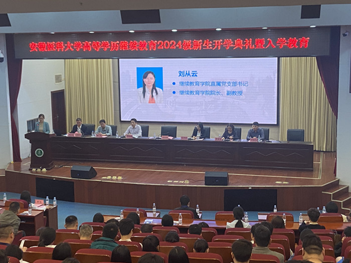 刘从云向2024级全体新生表示欢迎,简要介绍了学校98年来的发展历程和取得的突出业绩,回顾了继续教育学院近年来改革发展成果。她希望新同学要坚定信念,做一个有爱国情怀的人;要立德修身,做一个有崇高品格的人;要努力拼搏,做一个有进取精神的人;要求实创新,做一个有广阔视野的人。她同时寄语新生作为安医精神的传承者,要充分利用在校的学习时光,汲取安医精神,汇聚安医力量,以良好的精神风貌、刻苦钻研的学习精神、神圣崇高的事业追求、实事求是的工作实绩,让生命在“医”路上追光。