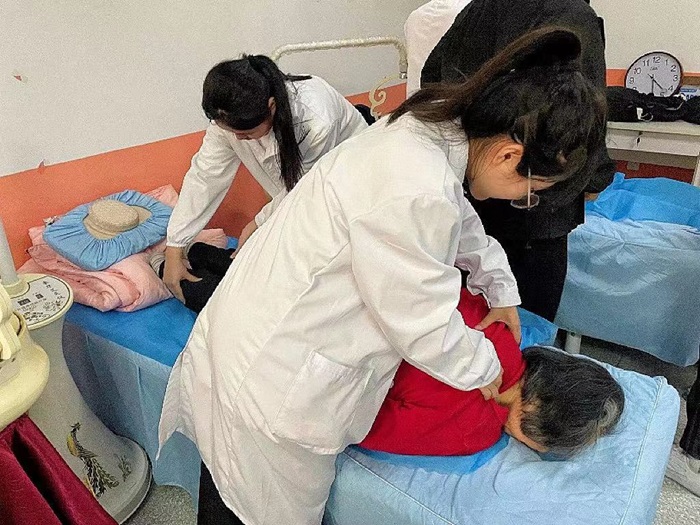 挂牌仪式后,安徽省体育舞蹈协会、辖区社居委、振亚养老的员工和我校学子共同为老人送上了精彩的文艺汇演。演出后,学校运动康复专业及部分临床医学(“5+3”一体化)专业学生在教师指导下,前往“安宁疗护工作坊”开展了老年人运动康复诊疗服务。同学们热情高涨,把所学知识融入到专业实践过程中,受到老人的一致好评。