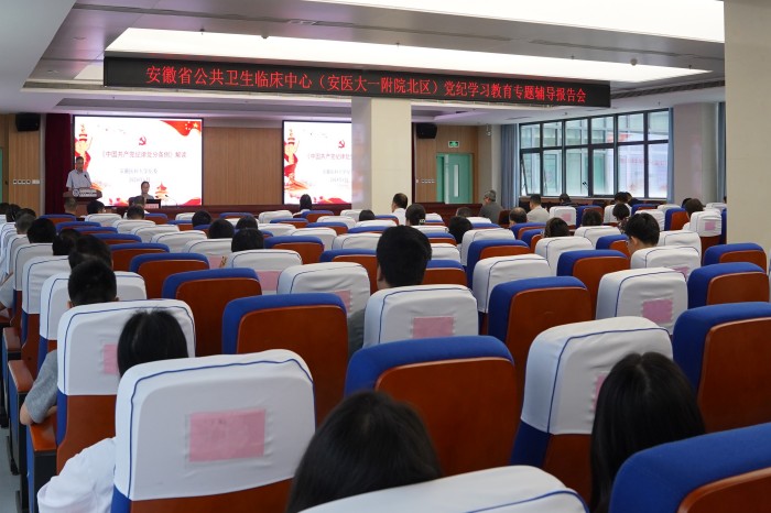 6月24日下午,校纪委书记、省监委驻校监察专员黄新美前往安徽省公共卫生临床中心(第一附属医院北区,为该院职工作题为《学习贯彻〈中国共产党纪律处分条例〉》的党纪学习教育专题辅导报告。
