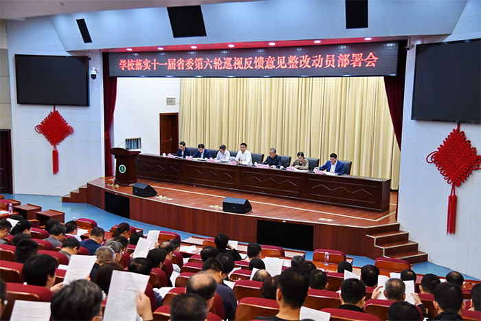 10月17日下午,学校召开落实十一届省委第六轮巡视反馈意见整改动员部署会,深入学习领会习近平总书记关于巡视工作重要讲话精神和中央及省委关于巡视工作要求,对省委巡视反馈意见整改进行动员部署。校党委书记王琦作动员部署讲话,校长翁建平主持会议。