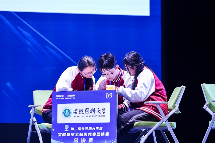 团体赛由江苏省、浙江省、安徽省、上海市选拔推荐的13所高校代表队参与,我校前期组织筹备工作积极、校内参赛选手成绩突出,顺利入选安徽省参赛队伍。比赛内容涵盖通识、化学、生物、电气、机械、辐射等实验室安全知识,全面考察选手的知识储备、掌握运用及应变能力。作为首次参赛的队伍,我校选手沉着冷静、分工明确、训练有素,经过上下半场九个关卡的艰难考验,最终取得二等奖的佳绩,在省内参赛队伍中排名第一。