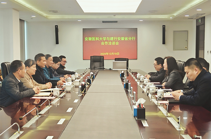 12月18日下午,校党委书记王琦带队前往建设银行安徽省分行调研,就深化银校、银医合作方面进行深入交流。建设银行安徽省分行党委书记、行长关雁翎出席洽谈会。校党委副书记、第一附属医院党委书记徐朝阳,建设银行安徽省分行党委委员、副行长彭军参会交流。