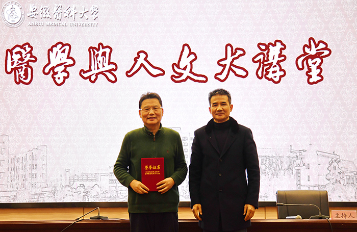 12月20日下午,安徽省政协常委、文化和文史委员会副主任刘明平研究员做客我校医学人文大讲堂,作题为《美学·艺术·音乐赏析》的专题报告。校党委书记王琦主持报告会,并代表学校向刘明平颁发“医学人文大讲堂”纪念证书。