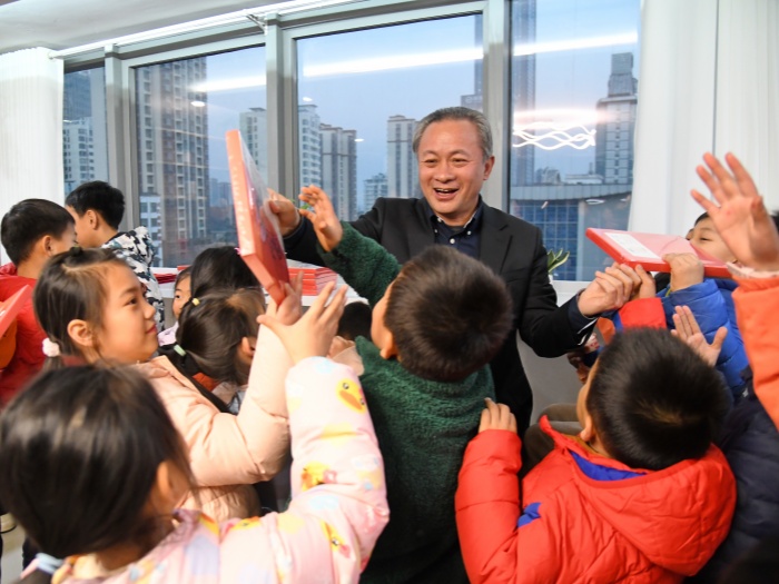 活动中,翁建平询问了孩子们的学习情况,了解他们的日常生活和兴趣爱好,鼓励孩子们要勇敢追梦,努力学习,健康成长。在2025年即将到来之际,他还为小朋友们发放了精美文具等礼品,祝愿大家新岁欢愉、学习进步,并欢迎他们以后常来这里休息放松。小朋友还向翁建平赠送了自己亲手制作的新年贺卡,现场氛围热烈温馨。