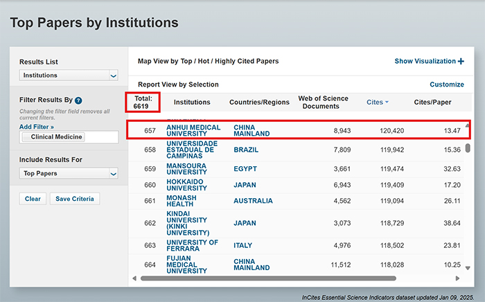 1月9日,科睿唯安公司发布的最新基本科学指标(Essential Science Indicators, ESI)统计数据显示,我校“临床医学”入围ESI全球前1‰学科。这标志我校科研实力和学术影响力迈入高段位、踏进新征程,也实现了安徽省属高校在该榜单“零”的突破。