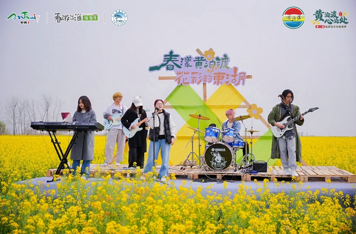活动中,来自大学生艺术类社团的50余名同学给乡亲们献上了精心编排的“接地气”的精彩节目,获得现场阵阵掌声。大学生主持表演团深情朗诵《可爱的祖国》,抒发了青年学子对祖国的热爱;大学生仁心民乐团打击乐合奏《鸭子拌嘴》,以轻松欢快的节奏形式描绘了纯真质朴的美好乡村景象;黄梅戏爱好者协会以曲调婉转悠扬的戏曲联唱,让观众近距离感受到国家非遗艺术的独特魅力;大学生芳华舞蹈团带来的舞蹈《淡妆浓抹总相宜》以优美的舞姿,展现了江南姑娘的曼妙婀娜,给人以视觉美的享受;良医合唱团的歌曲联唱《鸿雁》《茉莉花》《凤阳花鼓》《好运来》,用动人的民歌旋律展现了祖国大好河山地域文化之美。户外金色的油菜花田间,拾音乐yo社乐队表演用充满青春活力的歌声,歌唱出春日的美好,赢得现场观众与游客的驻足围观。