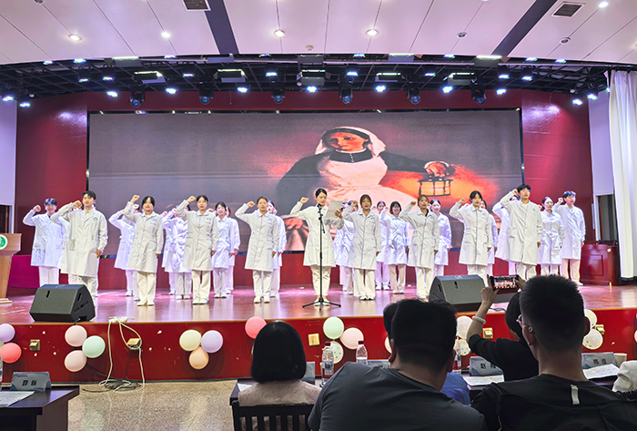 5月10日,护理学院在翡翠路校区多功能厅举办主题为“白衣执甲、护爱佑康”的护士节文艺晚会,庆祝第114个国际护士节的到来,弘扬南丁格尔精神,增强职业价值认同。副校长洪静芳出席晚会并致辞。