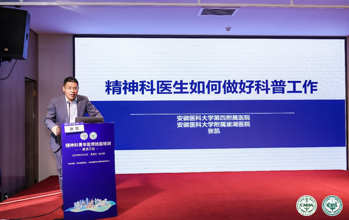 5月10日,由中国医师协会、中国医师协会精神科医师分会主办的精神科青年医师技能培训黑龙江站在哈尔滨市举办。活动期间,附属巢湖医院精神科副主任、副主任医师张凯受邀作了题为《精神科医生如何做好科普工作》的大会报告。