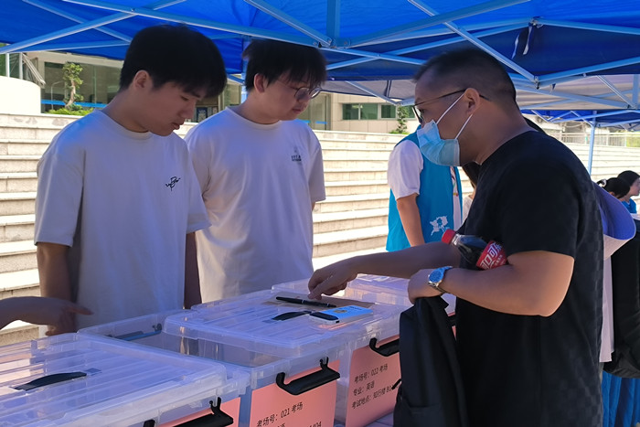 考试当天,省委教育工委委员、省教育厅副厅长刘业勋,省教育招生考试院院长、考区主考沈滔,校党委书记、考点主考王琦,校党委常委、副校长、考点副主考吕雄文等,深入考生手机和物品存放区、智能安检和人脸识别区、无线电监测点及网上智能巡考现场、综合指挥中心一线,了解考试有关情况并指导工作开展。