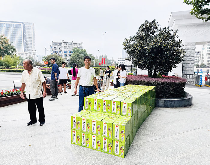 9月28日,校工会积极响应国家乡村振兴战略部署,紧扣“工会福利+消费帮扶”深度融合的工作思路,在组织部指导和大力支持下,牵头开展“以购代扶”专项行动,为帮扶村搭建起“从田间到餐桌”的稳定销售桥梁,有效激发农户通过产业增收致富的内生动力。此次“以购代扶”精准采购我校定点帮扶的霍邱县泽沟社区、黄泊渡村的大米、黑芝麻油、挂面、土鸡蛋等农副产品共2118份,共计84.72万元。